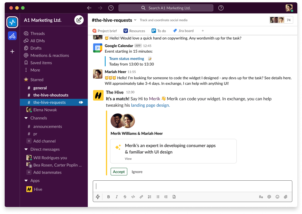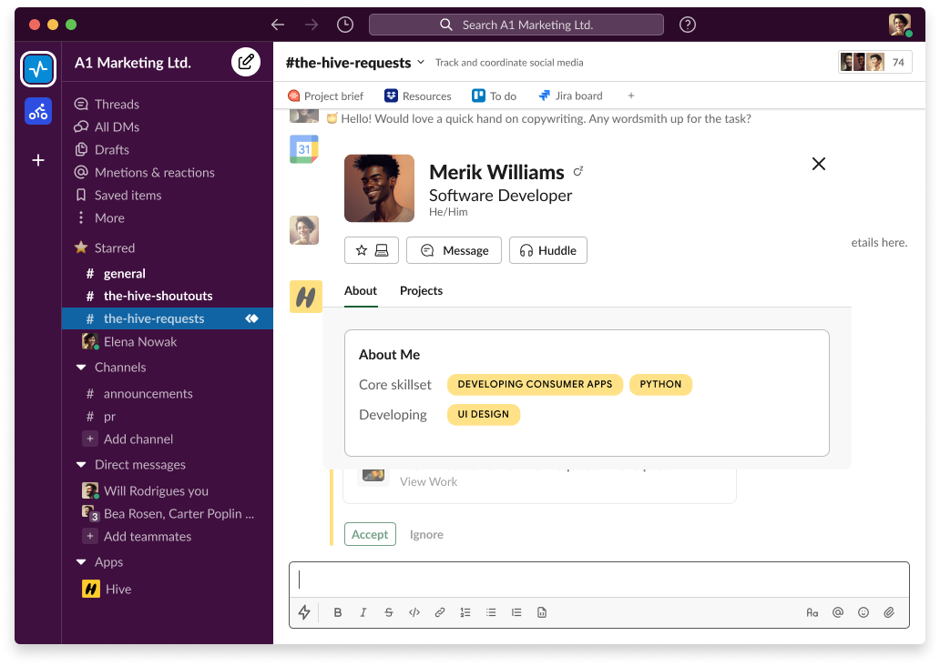 A collaboration involved around An AI-powered app extension that enables skill swapping within Slack